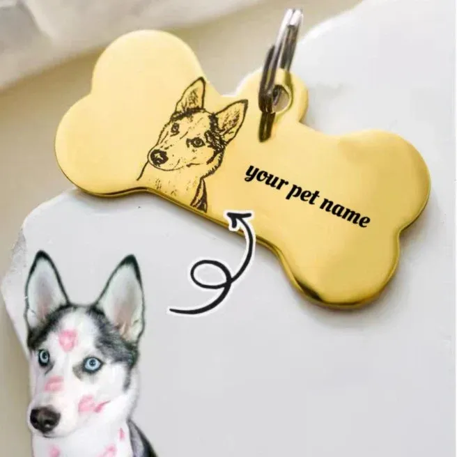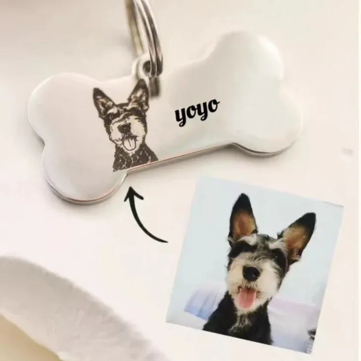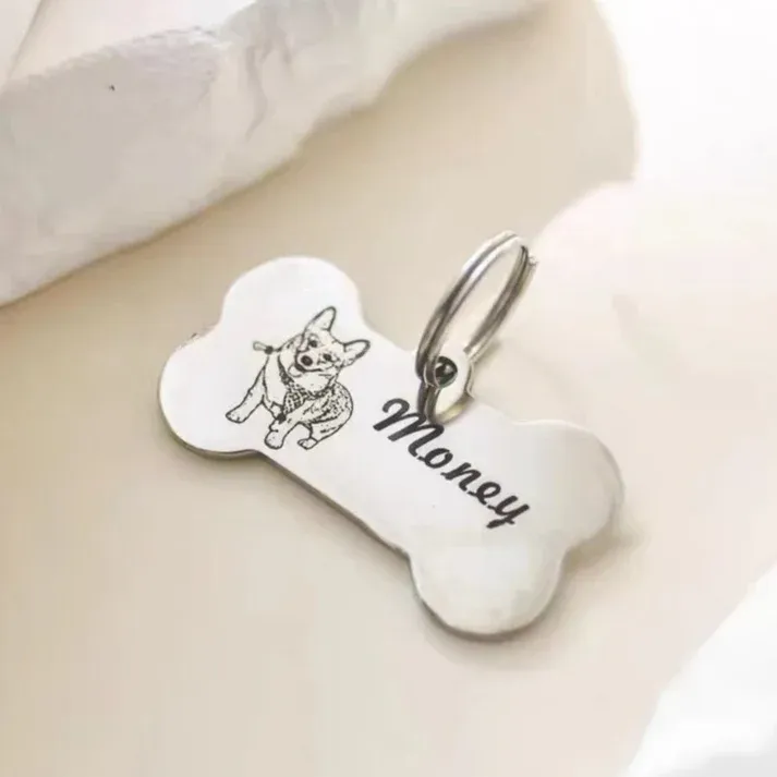 Celebrate your pet with our Custom Bone Shaped Dog Keychain. This classic dog tag, crafted from durable stainless steel, can be personalized on both sides with your pet’s portrait, name, and emergency contact number. The permanent laser engraving ensures the information is clear and readable on a polished, attractive dog tag. Available in two sizes to suit both small and large dogs, our 100% stainless steel tags are built to withstand the activities of even the most energetic pets.