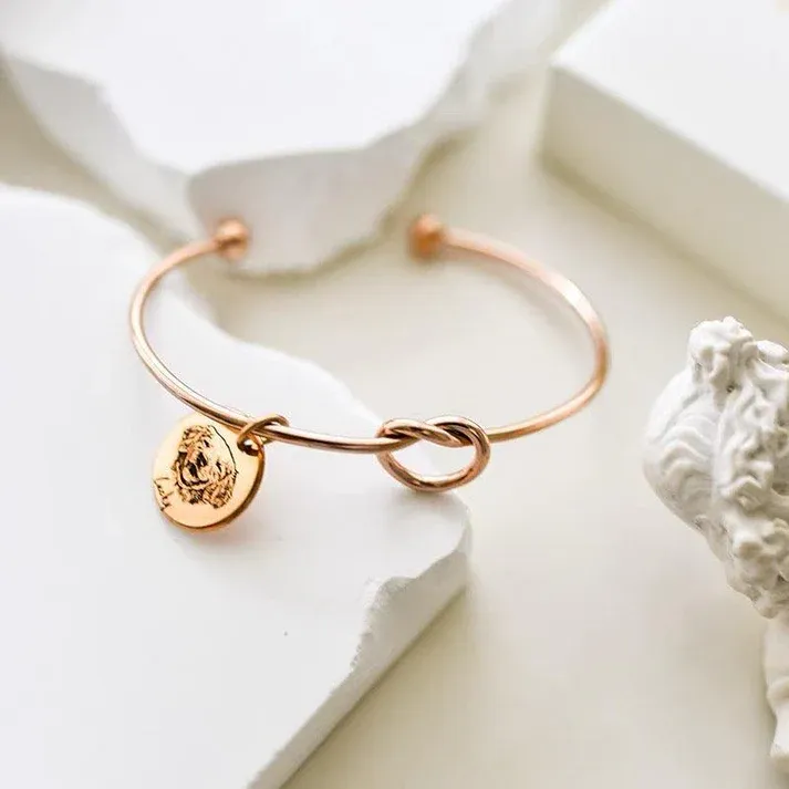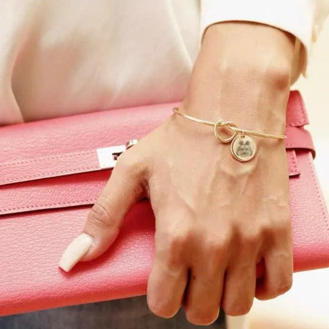 Preserve the memory of your beloved pet with our custom-knotted bangle bracelet. This elegant pet bracelet is the perfect photo-engraved memorial wristlet, allowing you to carry your pet’s essence with you wherever you go. Whether it’s a birthday, Valentine’s Day, anniversary, or Christmas, this bracelet is an unforgettable gift for pet lovers and a cherished keepsake for yourself.