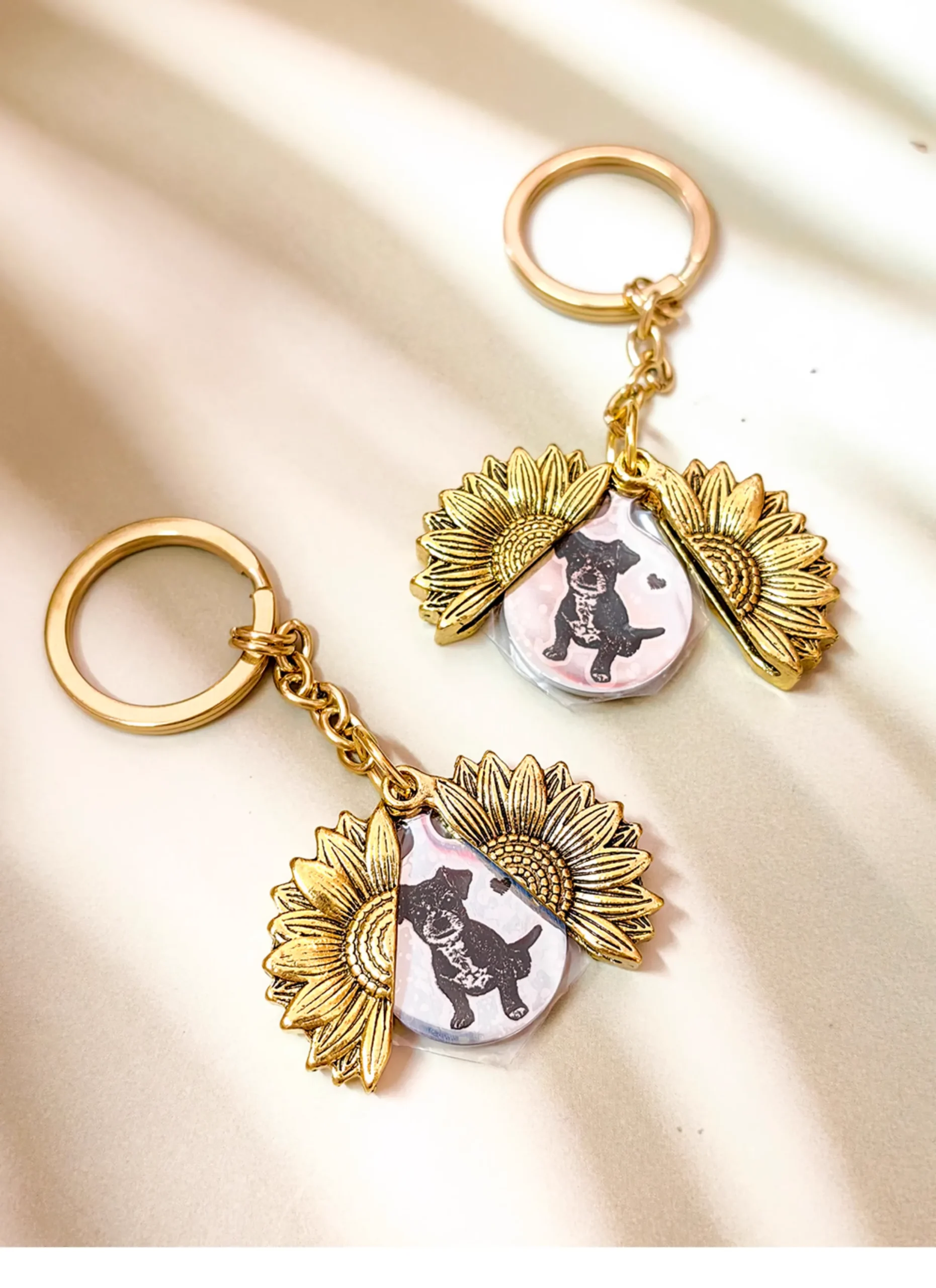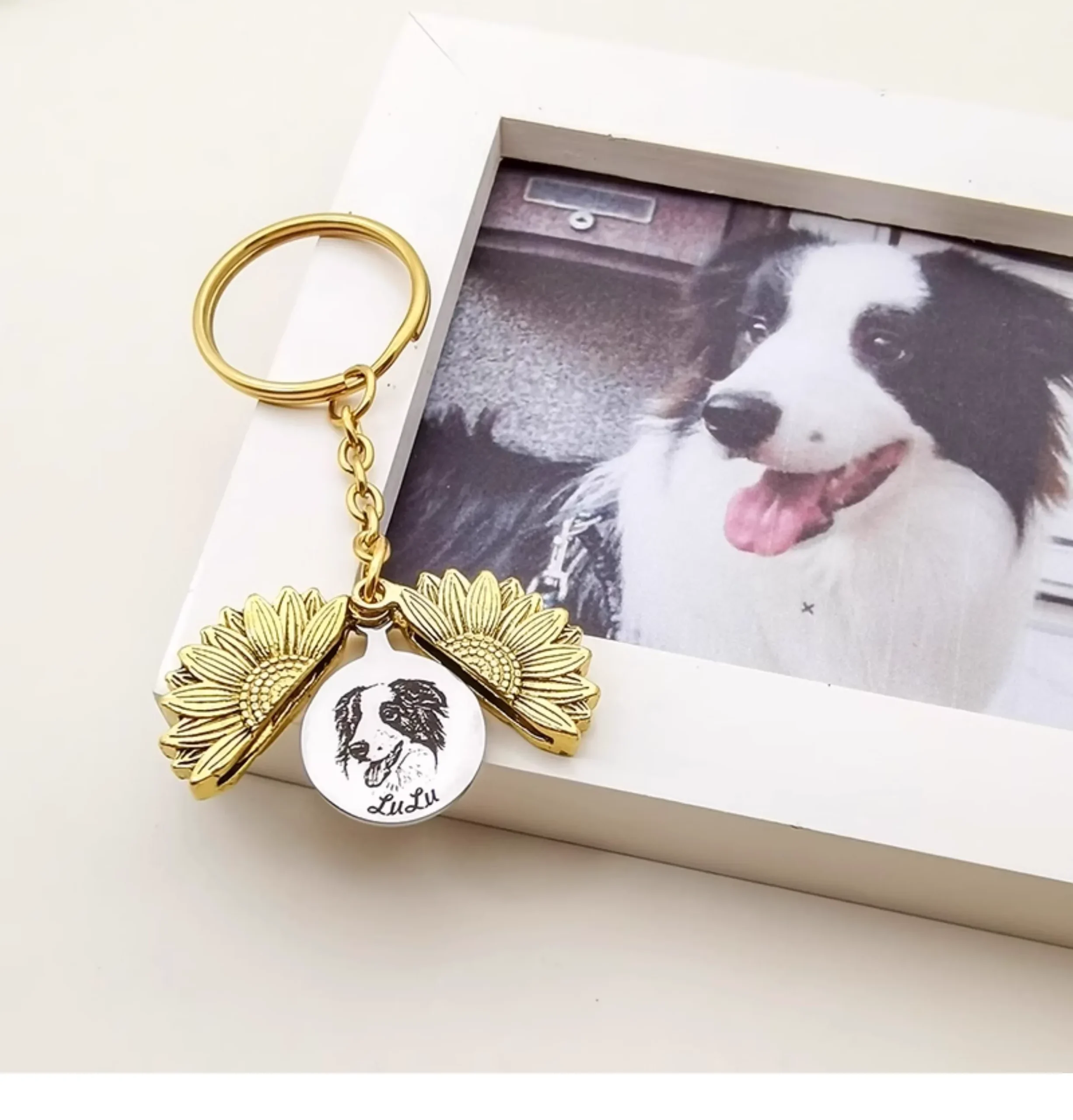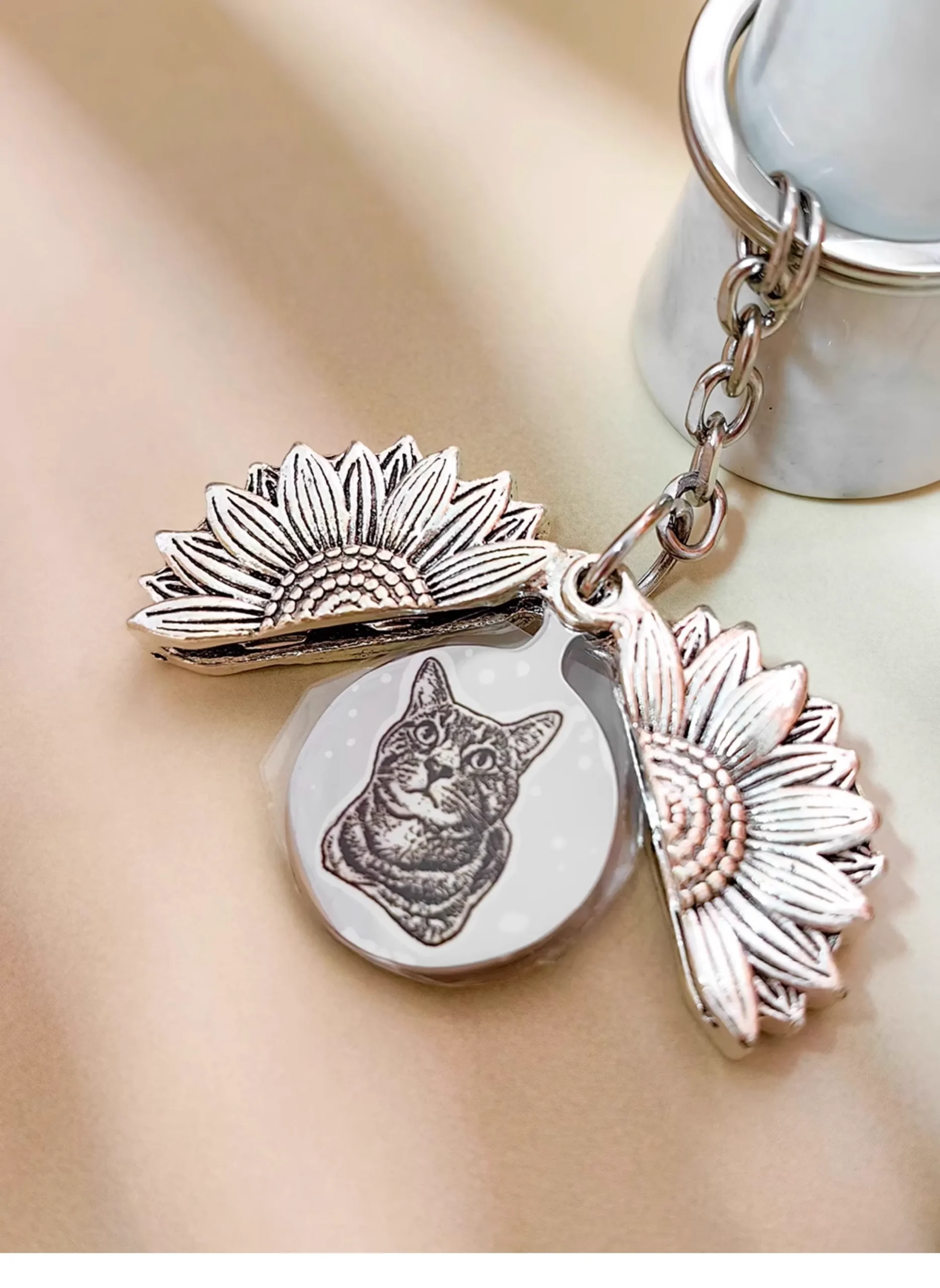 Celebrate the special bond with your pet with our custom engraved sunflower pet locket keychain. 🌻 Perfect for dog lovers, cat enthusiasts, and anyone who cherishes their furry friends, this personalized keychain is a thoughtful and unique gift for any occasion.